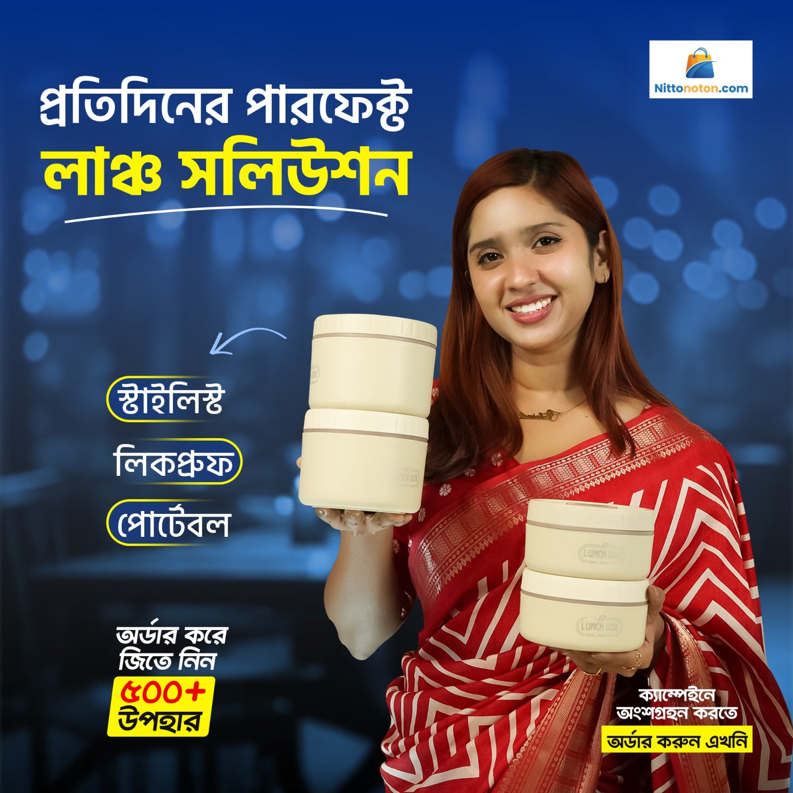 - উচ্চমানের BPA-Free প্লাস্টিক ও স্টেইনলেস স্টিল হওয়ায় খাবার থাকে সম্পূর্ণ নিরাপদ।
